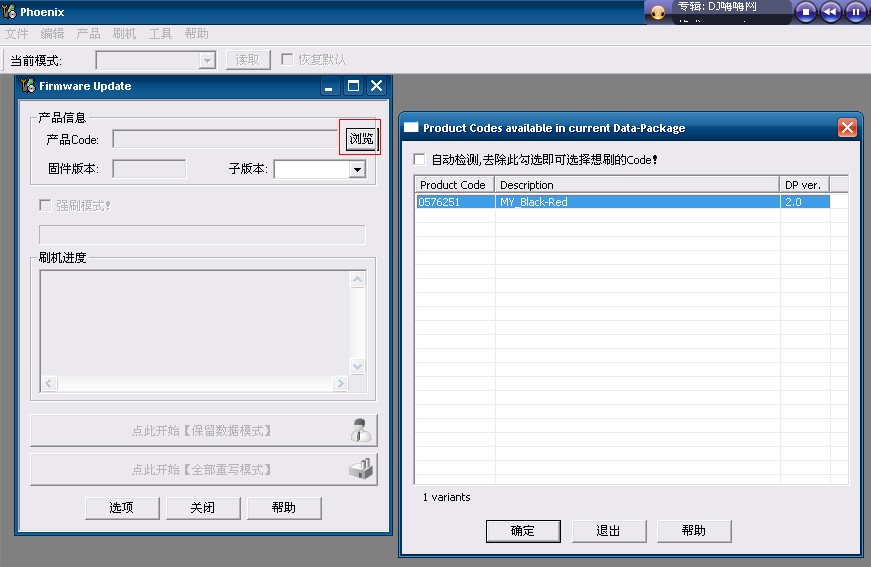 点击 Firmware Update 对话框中的 浏览按钮 选择对应的 固件包点击确定.